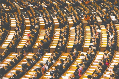 ↑ 在十九大闭幕会上,2000多名党代表对通过的每项决议报以热烈掌声。