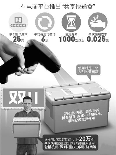 今年“双11”来临前,电商试水绿色物流,共享快递盒、循环包装袋、百分百可降解快递袋将投入使用。东方IC 供图