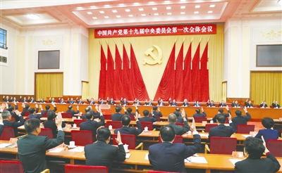 10月25日,中国共产党第十九届中央委员会第一次全体会议在北京人民大会堂举行。习近平同志主持会议并作重要讲话。