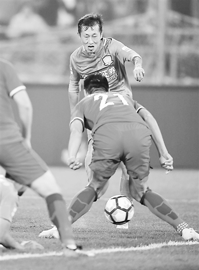 地方足协改革也需要突破。图为10月25日北京中赫国安队球员金泰延(后)在比赛中射门。新华社记者 孔卉 摄