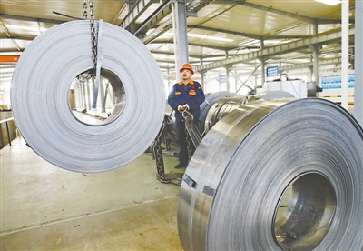 10月29日,工人在昌黎工业园区一特种板材生产公司的生产线上工作。