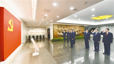 10月31日上午,在上海中共一大会址纪念馆,习近平带领其他中共中央政治局常委同志一起重温入党誓词。 新华社记者 李涛 摄