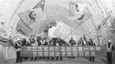 当地时间10月30日上午9点半,阿尔及利亚国庆节前夕,在地中海和煦阳光的照耀下,北非最长隧道——甘塔斯隧道正式贯通。