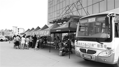 近日,在江西省万载县,一辆“三师”服务车穿梭在城镇乡村,为广大职工提供法律援助、政策解答、争议调解等服务。为维护职工合法权益,江西省总工会创立了“三师一室”(法律援助律师、工资集体协商指导师、健康工程师和劳动争议调解室)工作制度,万载县总积极响应,并安排专业服务队伍实行每周一、二坐班制度,还根据职工工作时间进行调整,推出“三师”服务车,实现从定点服务到流动服务的提升。本报记者 卢翔 摄