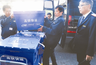 当日,中铁快运联合国内快递服务商,首次在京沪高铁线上推出的“高铁极速达”快运新产品开始试运行。铁路部门利用高铁列车、行李车等铁路快捷运力资源,尤其是在京沪高铁“复兴号”列车上新推出的“高铁极速达”实现了京沪快件10小时内可送达,具有速度快、运行稳等特点。