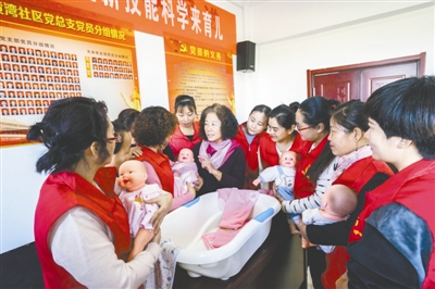 11月10日,河北雄县黄湾村社区育婴师培训班上,来自保定市光明学校的育婴老师正在给学员授课。