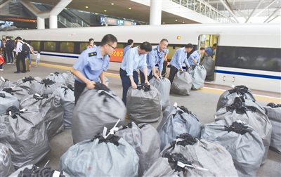 去年“双11”期间,广铁集团试水电商黄金周运输,每日开行有高铁快运服务的高铁动车组20趟,每日运货48吨,受到市场和广大消费者欢迎。“今年高铁快运再度加盟电商物流,运力有较大提升。广铁集团从11日起连续10天每天开办35趟始发和24趟终到高铁快运业务,列车趟次同比增加一半左右。”广铁集团客运处有关负责人说。