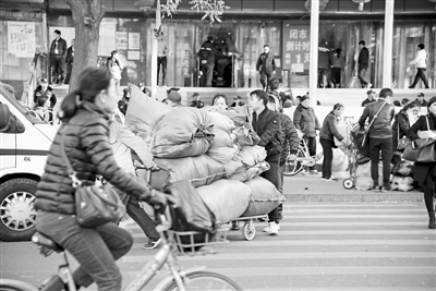 11月13日18时,“动批”天和白马服装商城正式闭市。这意味着动批距离彻底退出京城又进一步,截至目前,动物园商圈12家批发市场只剩东鼎批发市场尚未撤离。据工作人员介绍,今年年底前,动物园商圈区域的全部批发市场将完成疏解关闭,腾退出的空间将引入符合首都功能的产业。搬离天和白马服装商城的大部分商户将迁往天津、河北一带,寻找新的商机。图为天和白马服装商城外,商户在运送剩余货物。