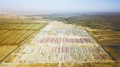 这是在新疆策勒县拍摄的一处异地扶贫搬迁试验区。试验区配套的畜牧棚圈、节水灌溉系统、经济林等可为贫困农牧民的脱贫致富提供保障(11月2日摄)。
