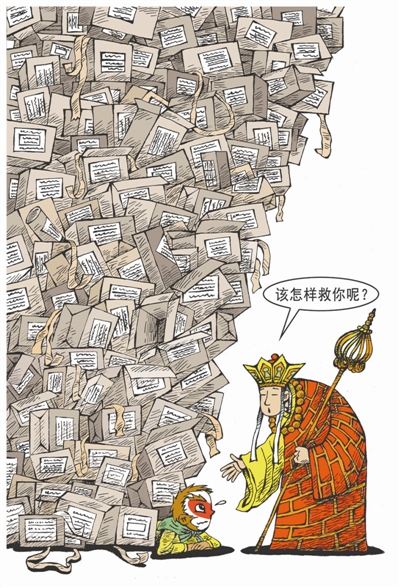 杨树山用一个严肃的玩笑告诉我们,那些快递垃圾,重重地压在行者的身上,以致让他无法前行,无法续写更精彩的神话。令人深思的是,当年“十万天兵天将”都“无计可施”的齐天大圣,这一次终于在“弱势”的普通消费者面前败下阵来。千万不要小瞧快递垃圾的威力,据说2015年全年,快递业使用胶带的长度就可以绕地球赤道425圈。