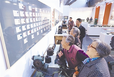 退休职工在员工卡片处驻足。本报记者 王伟伟 摄