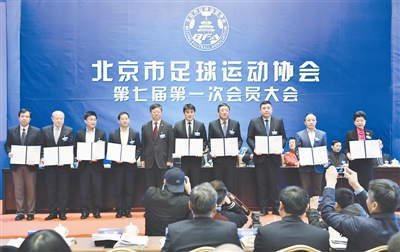 11月16日,北京市足球运动协会第七届第一次会员大会举行。121家会员单位代表出席会议并选举产生了第七届北京市足协执委会、监事会和秘书处。北京市体育局副局长杨海滨担任北京市足协新一任主席。本报记者 许之丰 摄