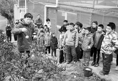邓秀新院士是我国著名的柑橘专家,他在自己工作的基地里给孩子们介绍各种柑橘品种、讲解柑橘培育种植知识、防病防虫方法等,深得孩子们的喜欢。新华社记者 程敏 摄