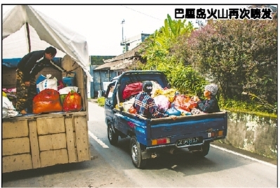 11月27日,在印度尼西亚巴厘岛,受火山喷发影响,村民们乘车撤离。