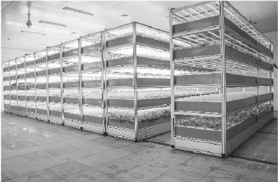 在位于浙江湖州的某农业科技园内,现代植物工厂的科研人员正通过人工光型封闭式现代植物工厂培育优质绿色蔬菜。 据悉,该工厂占地面积达800,采用多层立体无土栽培技术,土地空间利用率提高3~5倍,作物生长速率快,生产周期短;同时,生产过程采用无菌育苗,智能控制生长环境,有效阻隔病虫害侵染,不使用农药,无重金属污染,产品绿色安全。目前,生菜年收获18~22茬,产量达20万公斤,为露地栽培的30倍。