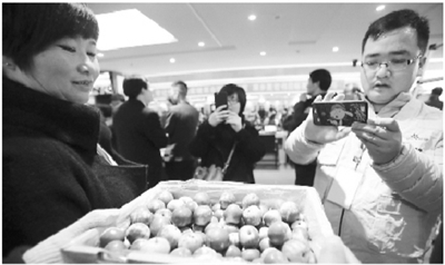 11月26日,在北京新发地农副产品批发市场中心,山西运城苹果品牌行(北京站)暨临猗县第六届果品文化节开幕。临猗县是全国苹果面积和产量最大的县,全县150万亩耕地,水果种植面积110万亩,年产水果25亿公斤。特殊的地理位置和温差大的气候特征,使这里的苹果、石榴、鲜枣、柿子、酥梨等水果具有甜、脆、水分大等特点,在全国市场占有率不断扩大。