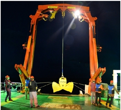 中国首次环球海洋综合科考开展电视抓斗作业
