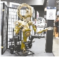 11月29日,日本东京,人们在2017国际机器人展上观看机器人表演。