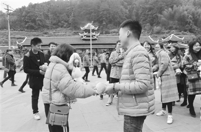 11月25日,在群山环抱的湘西少数民族居住地工作的火车站青工们,乘相亲专车来到靖州苗族侗族自治县寨牙乡的侗寨相亲,这是广铁集团怀化车务段“铁雷锋俱乐部”今年组织的第3次相亲会。当天,50多名男女青年在欢声笑语中做游戏、包水饺、对山歌、照相、赠送小礼物。