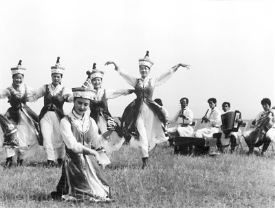 几十年前,“草原文艺轻骑兵”在“那达慕”大会上表演蒙古族舞蹈留影。中新社 赵伟 摄