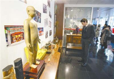 12月5日,在瑞士日内瓦,一名嘉宾在北京同仁堂瑞士中医门店内参观。