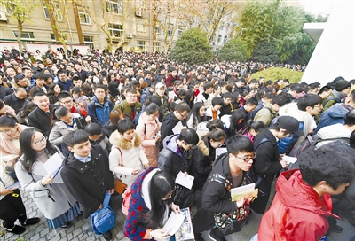 12月10日,在南京林业大学考点,考生进场参加考试。当日,中央机关及其直属机构2018年度考试录用公务员的公共科目笔试在全国各考区统一举行。 新华社记者 孙参 摄