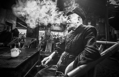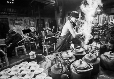 凌晨4点半,茶馆里就能喝上早茶,每天,都有形形色色的人进来,既有耄耋老人,也有二三十岁的年轻人。有的喝茶摆“龙门阵”,有的来此放松。他们或品茗独坐,或三三两两相聚闲谈。很多老茶客都有自己固定的座位,抽烟、喝茶、聊天、打牌……许多人一坐就是一整天,他们在此收获着宁静、快乐与悠闲,而淳朴、自然、平淡的生活方式也在这里无声地传承着。