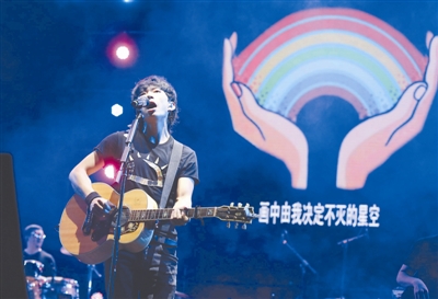 今年7月,民谣歌手赵雷在一场音乐节现场演绎《成都》引数万歌迷合唱。 视觉中国供图