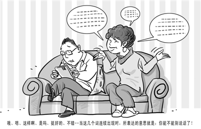 哦、嗯、这样啊、是吗、挺好的、不错——当这几个词连续出现时,所表达的意思就是:你能不能别说话了!赵春青 画