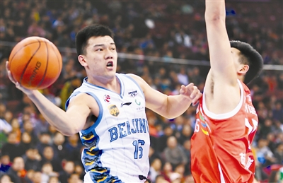 12月10日晚,CBA联赛北京首钢队主场以122比116战胜广州队。图为双方队员在比赛中。