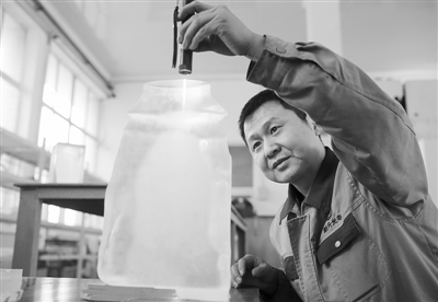 12月2日,山东能源淄矿集团新升实业公司员工彭存振对工业蓝宝石晶体进行检测(右图)。两年前,他还是一名有着23年工龄的煤矿工人,负责井下设备维修。2016年6月,他服务的拥有58年开采历史的埠村煤矿因连年亏损而关停(下图:参观者在井口参观),企业被迫转型。彭存振和部分工友一起被新成立的新升实业公司派往哈尔滨学习工业蓝宝石加工技术,经过一年多培训,他摇身一变成为蓝宝石加工车间的一名高精尖技术产业工人。目前,新升实业公司产业涉及工业蓝宝石、阻燃剂、医养、矿井服务等多个领域。今年1至10月份,公司实现收入14.2亿元,利润1786万元。