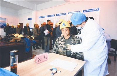 12月8日,中铁四局淮北龙支河水污染治理项目经理部联合艾诺体检中心送医到现场,为参建的52名农民工进行了冬季体检。此次体检包括抽血化验、身高体重、血压、内外科等10余项检查,并在现场对农民工进行了健康知识普及教育。