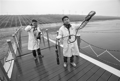 12月14日,在南水北调中线工程南阳陶岔渠首水质自动监测站,工作人员正在进行每天例行的水质检测。在南水北调中线工程全长1432公里的长渠上,共有4个水质检测中心和13个水质自动监测站,通水3年来,北上水质一直保持地表水二类标准。本报记者 杨登峰 摄