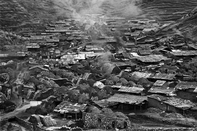 1996年5月,野马川乡被土法炼铅锌窑炉淹没的村庄。当时,由于一根根烧窑的模子酷似“炮弹”,野马川曾被戏称为“兵工厂”。