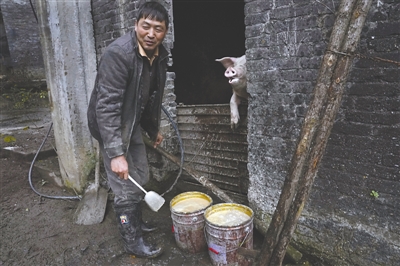 2017年12月11日,一位在流动中卖猪仔的农民。当日清晨,他从猪圈里赶出了11个猪仔,每个猪仔的价格600元,接近中午时还剩3个。