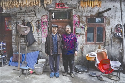 2017年12月11日,已经69岁的小煤窑矿主李小才和妻子在自家的房屋前留影。