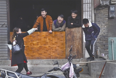 21年后(2017年12月),野马川乡村街道上的年轻人。