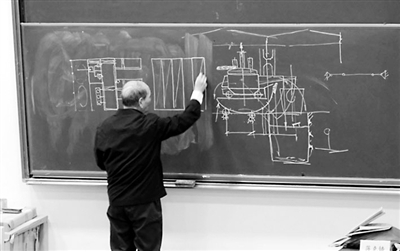 由于提前半个小时就到了教室,上课前,身着藏青色夹克、头发稀疏花白的他静静地坐在第一排。一点半一到,他缓缓站起,蹒跚地走上讲台,站定后,伴着全场的掌声,向大家深深地鞠了一躬。这是他近10年来,第一次重新站上浙大机械学院的讲台,也是他上的“最后一课”。