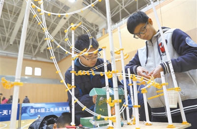 当日,第十四届上海未来工程师大赛在上海大学附属中学举行。上海市1300余名中小学生在“结构承重”“仿生机器人竞技”“高尔夫机器人”“云霄飞车”等项目上展开竞赛。