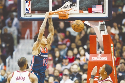 12月17日,奇才队球员乌布雷在比赛中扣篮。