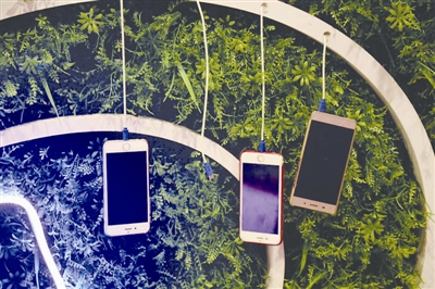 8月21日,山东济南天桥区某商业综合体内,手机充电墙方便市民免费充电。东方IC 供图