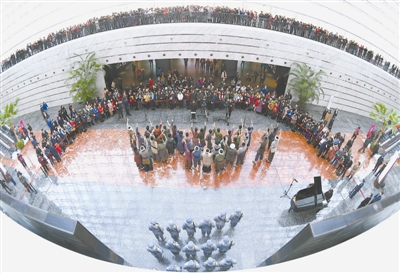 12月22日,观众在国家大剧院橄榄厅欣赏合唱。