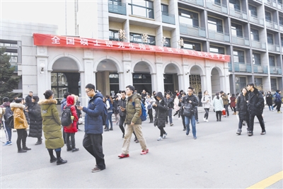 2018年全国硕士研究生招生考试于12月23日开考,报考人数达238万,比去年增加37万。图为中国人民大学考点的考生走出考场。本报实习生 王萌萌 摄