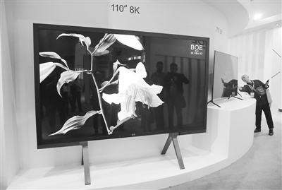 11月1日,在第十三届“中国光谷”国际光电子博览会上,展出了一款全国最大的110英寸8k超高清电视机屏幕。