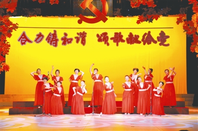 红云红河集团退休老职工在举行小合唱,歌颂共产党