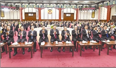 12月29日,全国政协在北京举行新年茶话会。党和国家领导人习近平、李克强、张德江、俞正声、张高丽、栗战书、汪洋、王沪宁、赵乐际、韩正出席茶话会并观看演出。 新华社记者 李学仁 摄