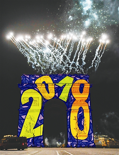 2017年12月31日午夜至2018年1月1日凌晨,巴黎市政府以在凯旋门上进行声光投影的方式庆祝新年的到来。