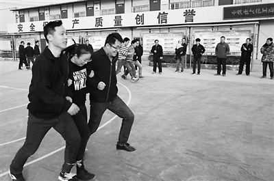 2017年12月30日,中铁电气化局铁路工程公司商合杭项目部在安徽亳州举办了“庆元旦迎新年”趣味运动会。比赛项目由员工自己设计,将工地特色与趣味性、娱乐性融为一体,赢得员工青睐。 倪树斌 摄
