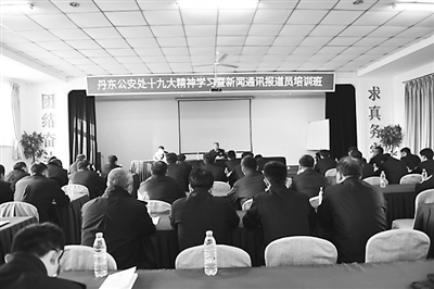 为深入学习宣传贯彻党的十九大精神,充分理解和把握党的十九大报告精髓要义和丰富内涵,近日,丹东铁路公安处举办十九大精神学习暨新闻通讯报道员培训班,力求在学深悟透、学以致用上下功夫,并运用到今后的工作之中。刘嘉辰 贾勇摄