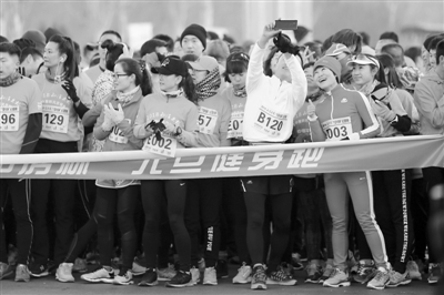 1月1日,参加竞赛跑的选手在出发前自拍。